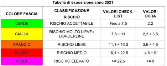 - Valutazione del rischio: classificazione per compito/postazione e individuazione delle priorità.